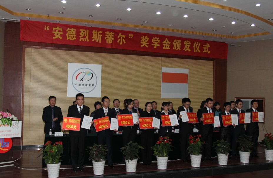 中德学院现设有各类奖学金,用以激励和褒奖中德学院学生在学习和其他方面取得一定成绩的同学。其中,针对国内同学的奖学金种类有国家奖学金、省政府奖学金、青岛科技大学学校奖学金、中德学院奖学金,以及中德学院合作企业提供的企业奖学金:安德烈斯蒂尔奖学金和菲尼克斯奖学金;针对留德学生的奖学金,这部分以DAAD奖学金为主,同时还有其他类留德学生奖学金。