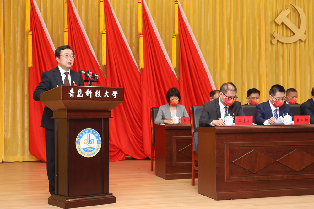 中共山东省委教育工委委员、省教育厅党组成员、副厅长邢顺峰,中共青岛市委常委、宣传部部长、市委教育工委书记刘升勤到会祝贺并讲话。李兴伟同志代表中共青岛科技大学第十届委员会向大会作报告,大会开幕式由陈克正同志主持。
