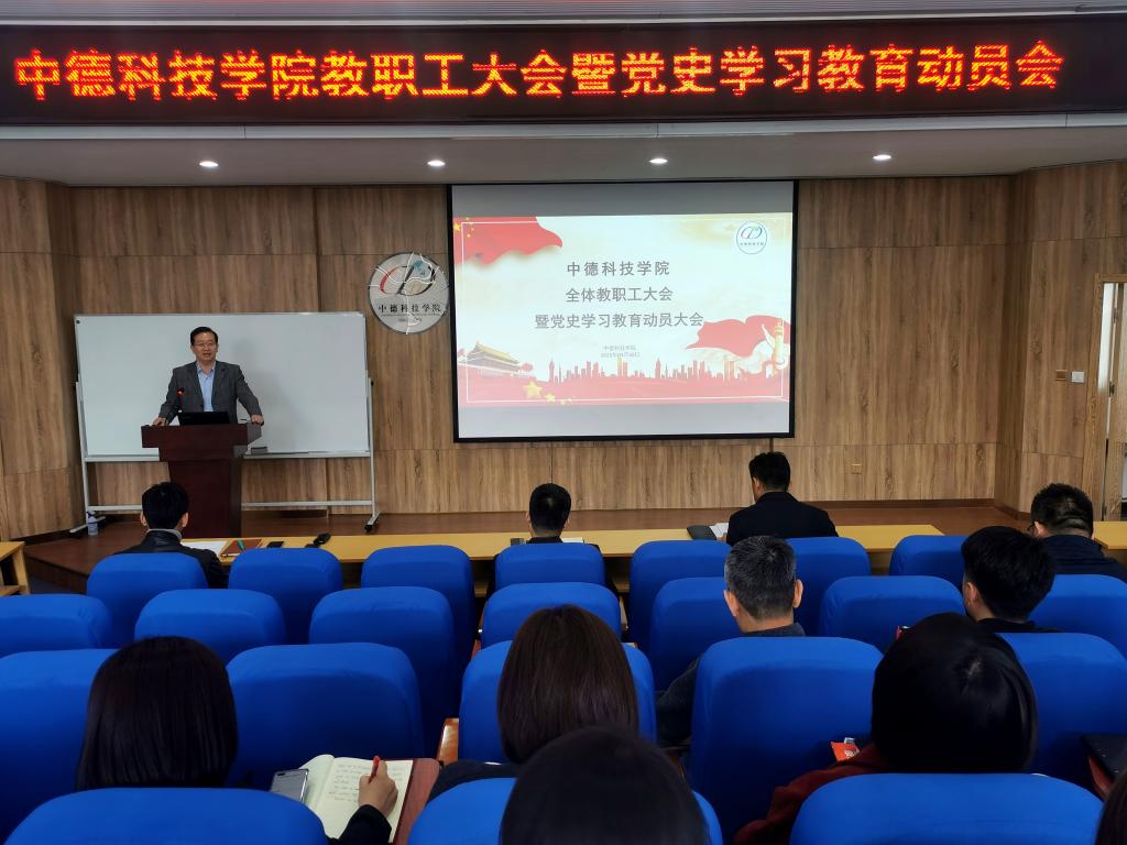 3月30日下午,威尼斯5994全体教职工大会暨党史教育动员大会在学院报告厅C3103召开,学院党政领导、全体党员、教职工参加会议,会议由党委副书记马骥主持。