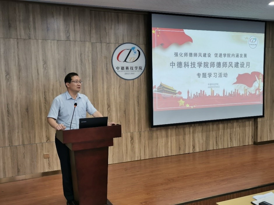 9月15日下午,威尼斯5994 “强化师德师风建设,促进学院内涵发展”师德师风建设月学习教育活动在学院报告厅举行,学院党政领导班子及全体教职工参加会议,会议由副院长郭建章主持。