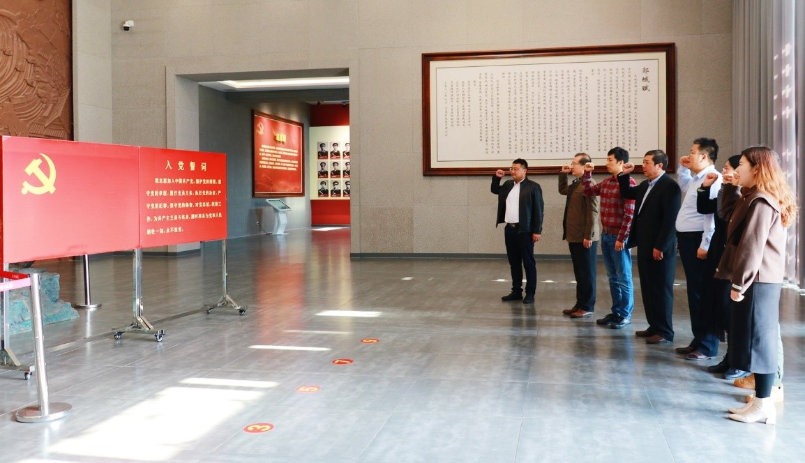 沂蒙党性教育基地郯城教学点位于被誉为“双千年古镇、大江北水乡”的马头镇,在讲解员的生动解说下,党员老师参观了中共鲁南第一支部旧址和郯城革命斗争史纪念馆。通过一幅幅珍贵的历史照片、一幕幕感人的革命场景,结合历史图片、文献史料、情景模拟展现,学院党员干部重温了中国共产党领导中国人民进行新民主主义革命、社会主义建设建设、改革开放所取得的伟大成就,被革命先烈爱党爱国、奋勇战斗、不畏牺牲、无私奉献的革命精神所感染。参观完毕后,党员们来到革命斗争史纪念馆宣誓板前,面对党旗,重温入党誓词。