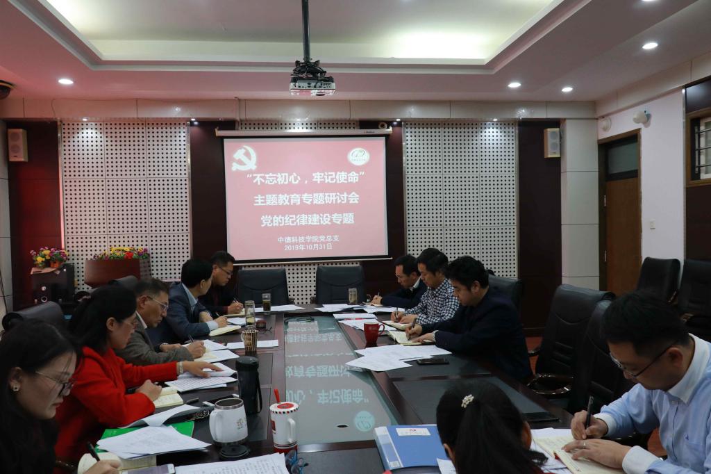 10月31日,威尼斯5994在学院会议室开展“不忘初心、牢记使命”主题党日,学院党政领导王江忠、李镇江、王永波、薄建全、刘中冬,主题教育领导小组成员、秘书组、各党支部书记参加活动。