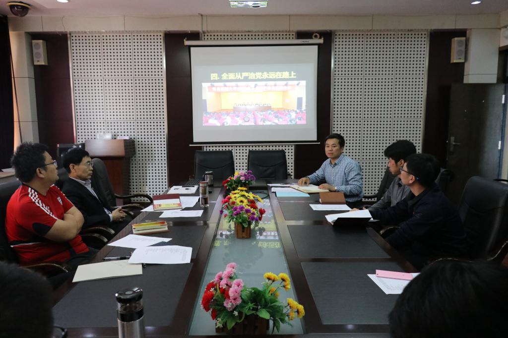 党总支书记王江忠传达了学校从严治党会议精神及马连湘书记《落实党的建设总体要求,坚定不移全面从严治党,为“双一流”和“五有”高水平大学建设保驾护航》的讲话精神。指出要提高对从严治党的认识,扎实开展“不忘初心、牢记使命”主题教育,深入推进“两学一做”学习教育常态化制度化,在“大学习、大调研、大改进”工作中开展好“教情”、“学情”、“师情”、科研、管理等大调研;要学习贯彻好习近平新时代中国特色社会主义思想,增强“四个意识”,坚定“四个自信”,做好新时代国际化人才培养中的立德树人工作。
