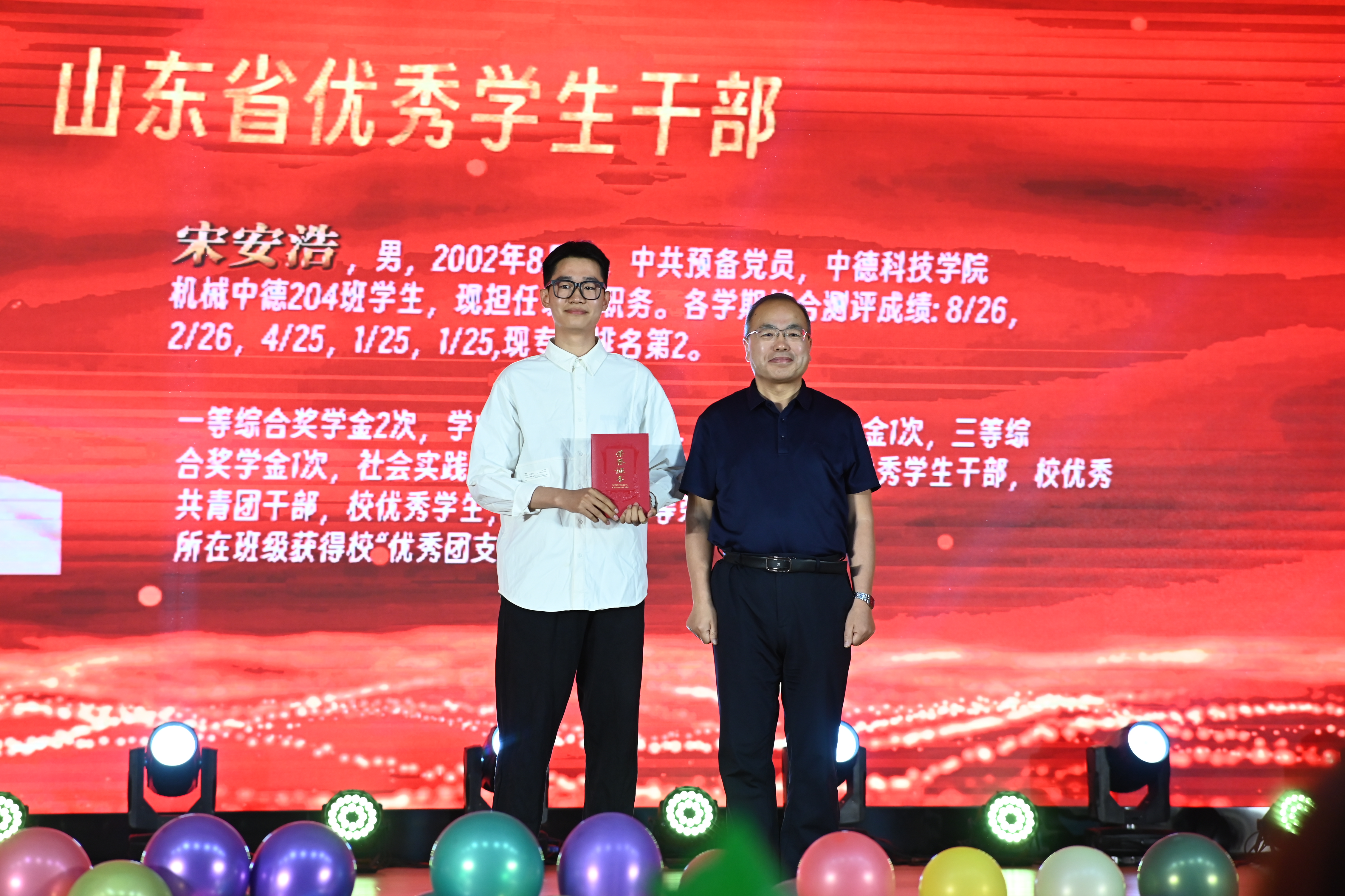 优秀学生表彰环节,丁林为优秀山东省学生干部颁奖,张洪坤为山东省优秀学生颁奖,德国帕德博恩大学驻威尼斯5994德语负责人Schlimbach为获青岛科技大学第十七届“十大优秀学生”颁奖,刘天真、郭永为山东省优秀毕业生颁奖。学院将以此次优秀学生表彰为契机,发挥榜样中德模范带头作用,加强学风建设,提升育人实效。