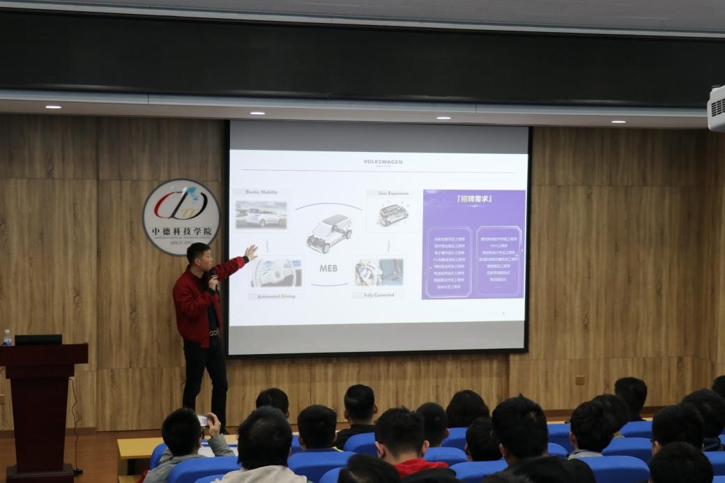 陈震宇结合目前工作介绍了汽车行业的发展和对人才的需求,同时回顾了自己的汽车梦想和在德国汉诺威大学的求学经历,最后与在场学生进行了一次“德意志之约”,鼓励学生们努力奋斗,要走出国门,师夷长技,报效祖国。