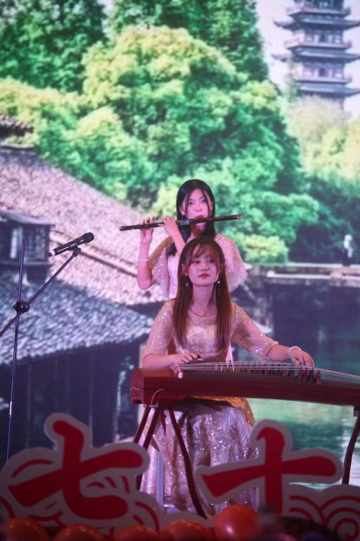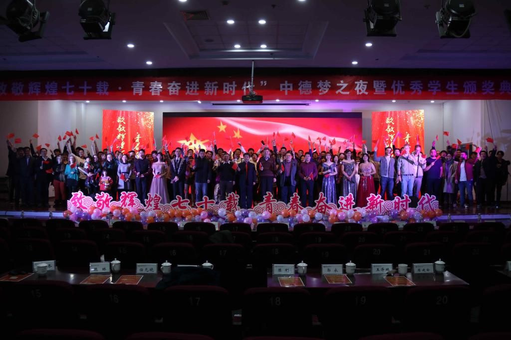 典礼上,德国外教、德国来华留学生和中德学子进行了以“致敬辉煌七十载,青春奋进新时代”为主题,并融合中德两国文化的校园文化建设成果展示。