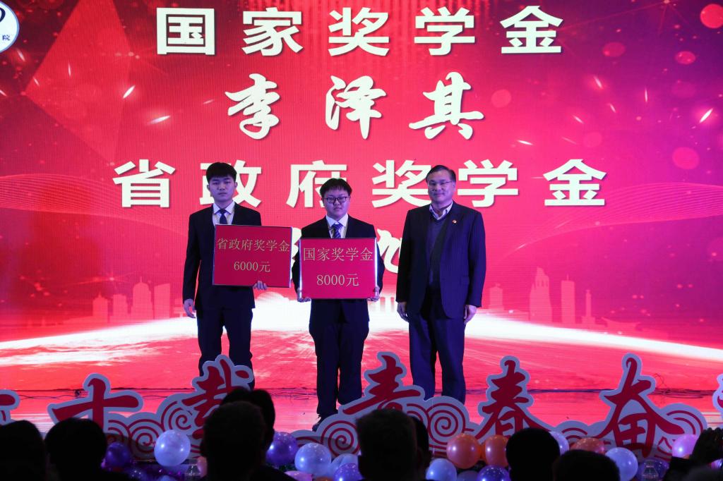 陈刚为获国家奖学金、省政府奖学金的优秀学生颁奖。