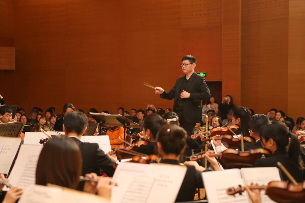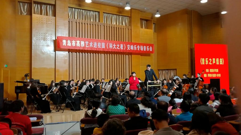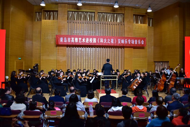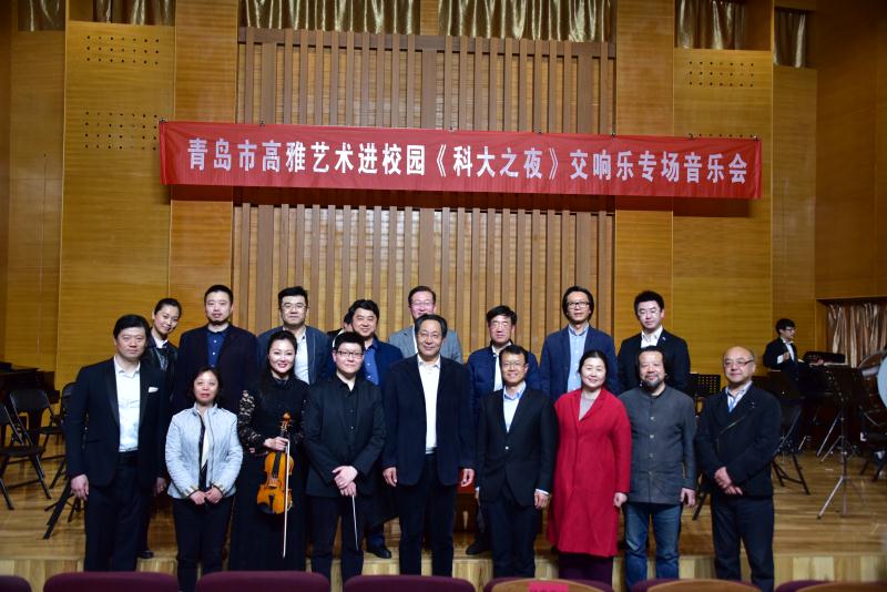 今年是五四运动100周年,新中国成立70周年,4月29日晚,由中共青岛市委宣传部、中共青岛市委教育工作委员会主办,青岛科技大学美育中心承办,“青岛市高雅音乐进校园”《科大之夜》交响乐专场音乐会由青岛市歌舞剧院交响乐团在青岛科技大学音乐厅精彩上演。青岛市歌舞剧院交响乐团的音乐家们为我校师生带来了一场洋溢青春气息、传承五四精神的经典音乐盛宴。青科大副校长韦殿华,青岛市委宣传部文创处处长闫杰,文艺处处长林红,学校党委宣传部、校团委、校友办、威尼斯5994、艺术学院有关单位负责人与学校师生及市民观众一同欣赏了音乐会。