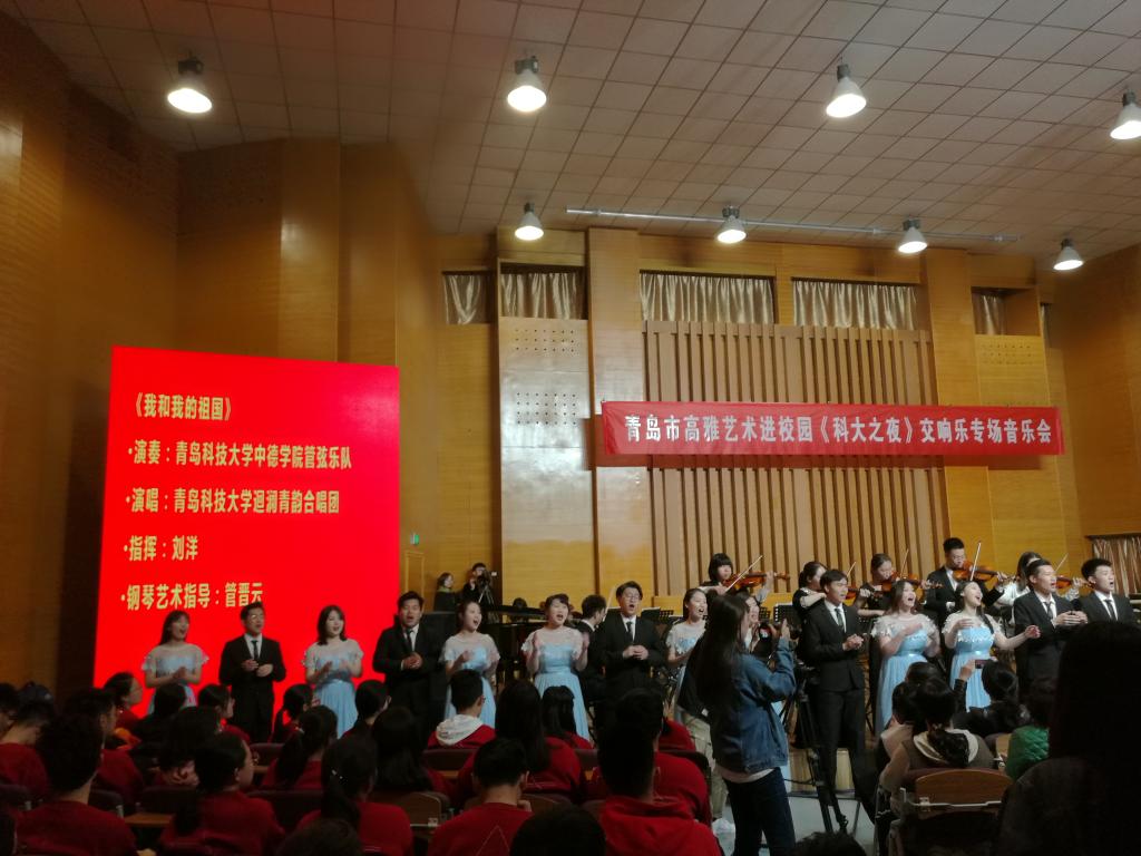 音乐会开场之前,青科大威尼斯5994弦乐团、青岛科技大学迴澜青韵合唱团联手演绎了快闪《我和我的祖国》,将优美动人的旋律与朴实真挚的情感巧妙结合起来,表达了青年学子和老师对伟大祖国的衷心依恋和真诚热爱。