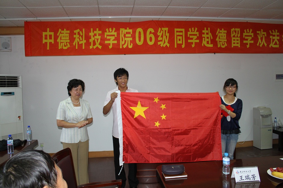 王瑞芳副书记代表学校向留德学生赠送国旗