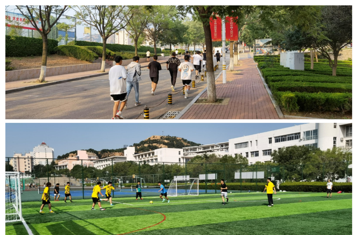 铸强健体魄,扬中德风采。10月1日-2日,学院开展了“爱体育、兴科大”主题体育活动。推广使用“爱体育”APP,结合校园红色打卡点,组织、引导学生开展校园健身跑。同时,学院也举办了以“无限风采,始于足下”为主题的友谊足球赛,帮助学生在体育锻炼中享受乐趣、增强体质、健全人格、锤炼意志。