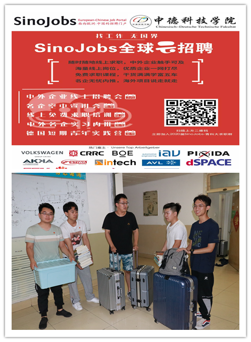 “云”端求职——“多彩校招,微你而来”。“云”招聘提升海内外学子就业质量,学院发挥中德高校联盟作用,借助SinoJobs全球云招聘平台优势,通过就业指导中心“云招聘”、共青团“青鸟计划”,积极拓展学生求职渠道,满足海内外学子求职需求。SinoJobs开设“云”课堂,邀请知名企业家为毕业生讲授大学最后一课,为毕业生走向社会、走向职场开启新的人生篇章,帮助毕业生了解如何通过转变角色,从而迅速融入到工作团队中,实现“职场人”这一角色转变。