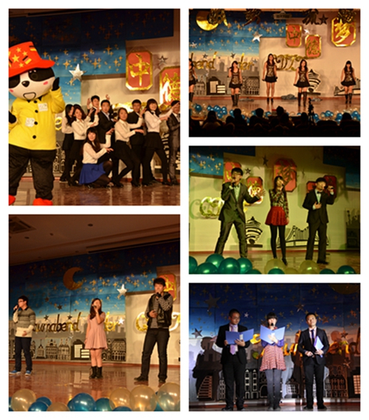 整场晚会围绕“青春与梦想”这一主题,融合中德两国文化,为同学和老师们带来了一场丰富多彩的文艺表演。2013级五个姑娘带来的舞蹈《sexy love》热情洋溢,表现出了中德女生的活泼与朝气,让大家领略到时代的魅力;学院吉祥物“大福”的首次登台得到了同学们的集体欢呼,同时也将“责任、担当、自强、进取”的中德品质传递给大家;学生会各部长们带来的舞蹈《绅士的狐狸》点燃了全场的热情;融合了扬琴、古筝、二胡、萨克斯、大提琴、电子琴等中西乐器的《中西斗琴》将民族乐器和西洋乐器的韵味体现的淋漓尽致,也展现了学生的多才多艺。学生自编自演的话剧《白蛇后传》则以其幽默的台词、夸张的表演博得阵阵掌声。此外,德国外教老师的歌曲《CELLO》,中教老师们的《四季联唱》,以及分团委老师们的歌舞《奔跑》博得了同学们的喝彩与欢呼声,掀起了阵阵高潮。