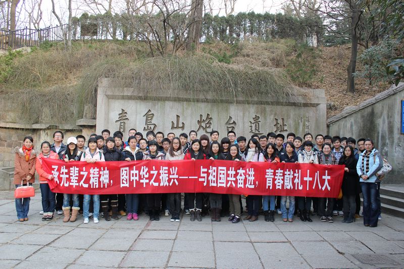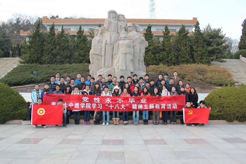 在一二九运动77周年到来之际,为了深入学习贯彻落实“十八大”精神,12月4日下午,学院学生党支开展了学习贯彻落实“十八大”精神,党性永不毕业主题教育活动。分团委全体老师、全院学生党员、入党积极分子、学生干部代表参观了青岛山炮台遗址及青岛市革命烈士纪念馆,接受了一次生动的革命传统教育和爱国主义教育。依托此次主题教育活动,学院学生党支部召开支部大会,讨论了于骁等12名同学的入党问题,结合学院党总支学习“十八大”精神的相关要求,署了学生支部的学习计划。