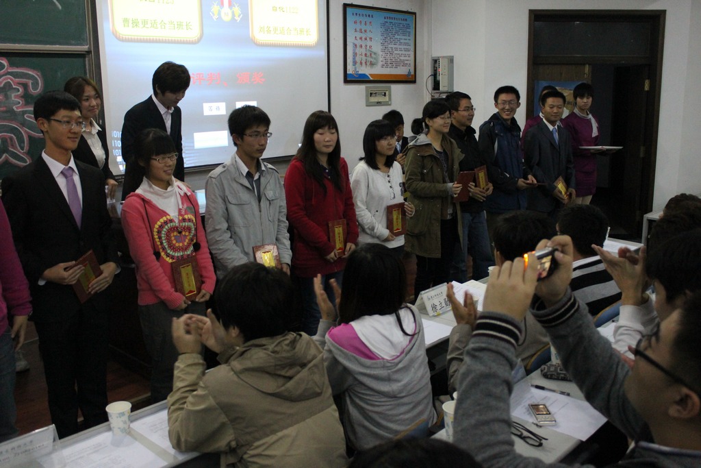 宝剑锋从磨砺出,梅花香自苦寒来,学院2011年辩论赛决赛于2011年11月5日下午在威尼斯5994阶梯教室举行,经过半个多月的初赛,机自1125班代表队与自化1122班代表队脱颖而出,成为最终闯入决赛的两支队伍。党总支副书记徐立勋老师,分团委王磊老师,院学生会主席团全体成员,学院第八届辩论赛最佳辩手出席了此次比赛。