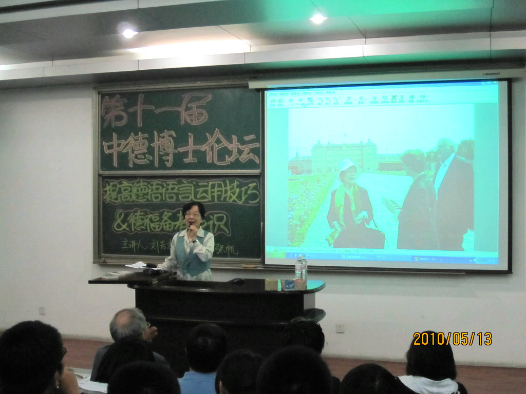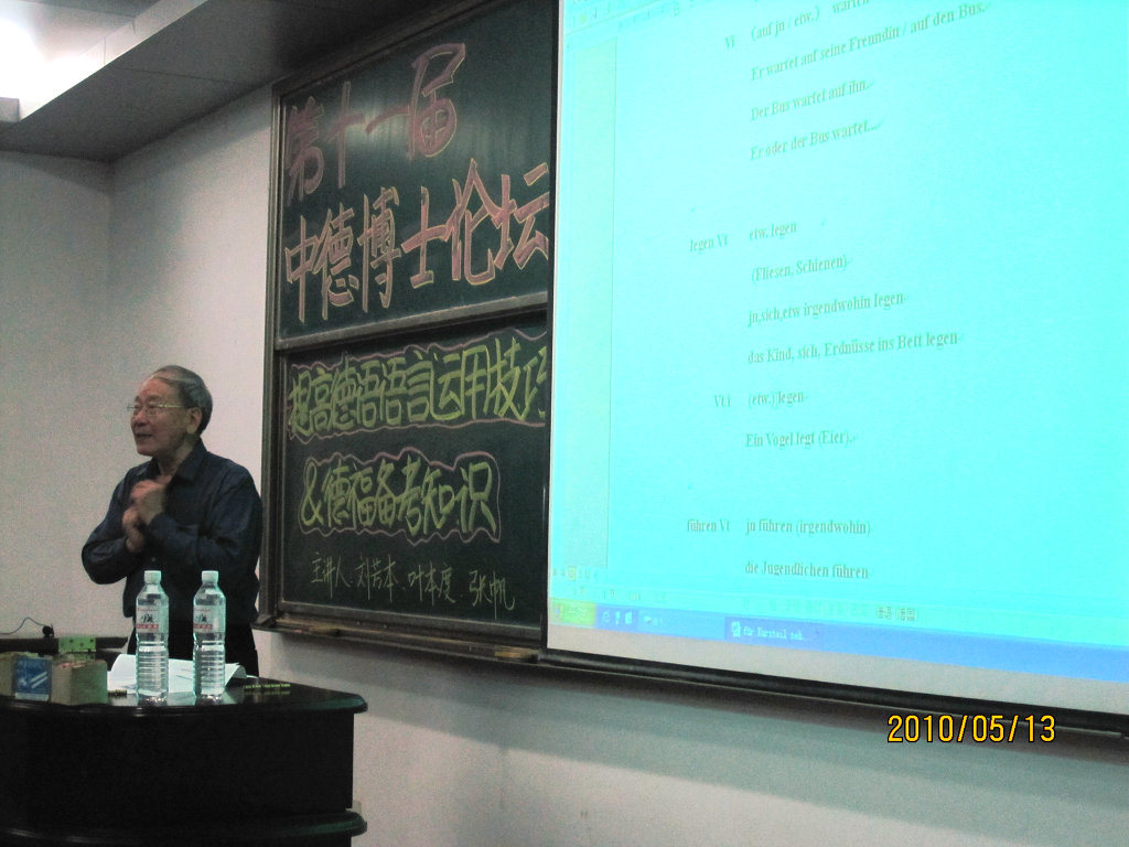 5月13日晚,在我院学生会德中交流部的组织下,国务院有突出贡献专家、《朗氏德汉双解大辞典》编辑、北京外国语大学资深教授刘芳本和《朗氏德汉双解大辞典》主编、北京外国语大学资深教授叶本度以及知名德福培训讲师张帆做客第十一届中德博士论坛,为我校德语爱好者作了题为“提高德语语言运用技巧和德福备考知识”的讲座。