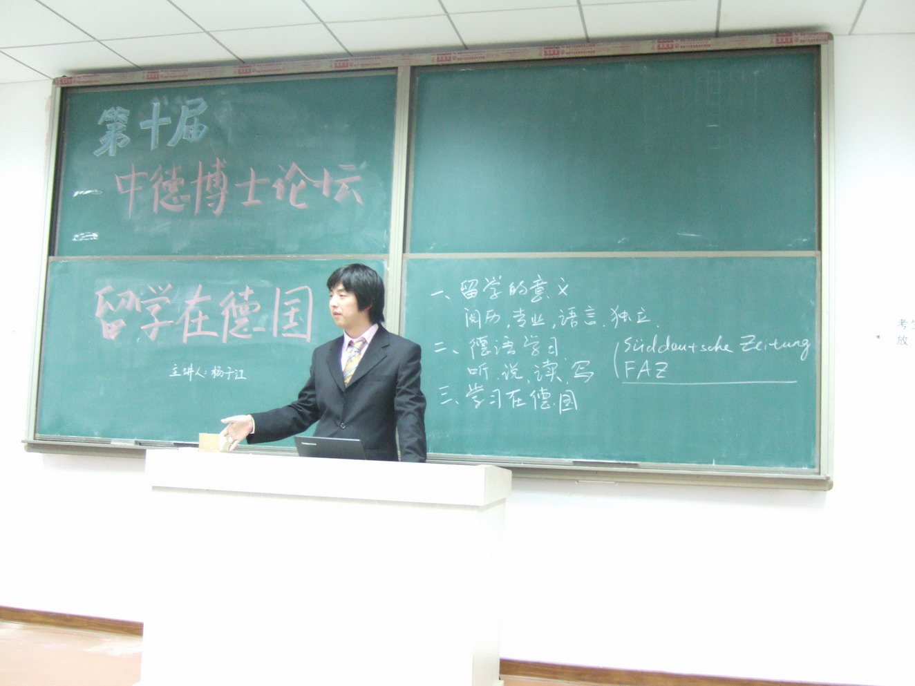11月26日下午3点30分,在崂山校区明德楼338教室,德国马尔堡大学博士杨子江老师走进第十届中德博士论坛,为我院各年级同学做了主题为“留学在德国”的报告。
