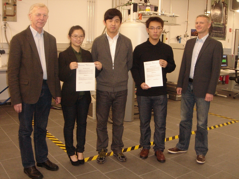 帕德博恩大学应化专业前任项目负责人Fels教授,新任项目负责人Tiemann教授与我院应化专业项目负责人杨子江教授为两名学生颁发了获奖证书。