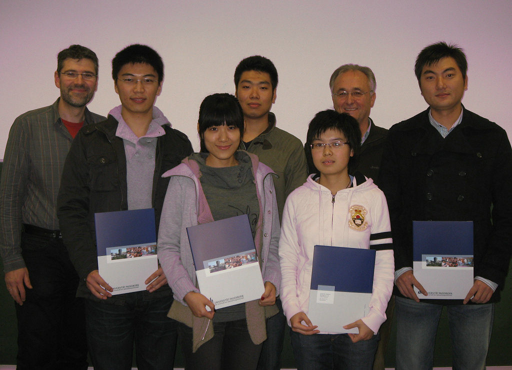 帕德博恩大学机械系施密特教授(Prof. Dr.-Ing. Hans-Joachim Schmid)和诺克博士向张媛、顾德菲、王硕、杨光辉和王宁同学颁发了获奖证书。