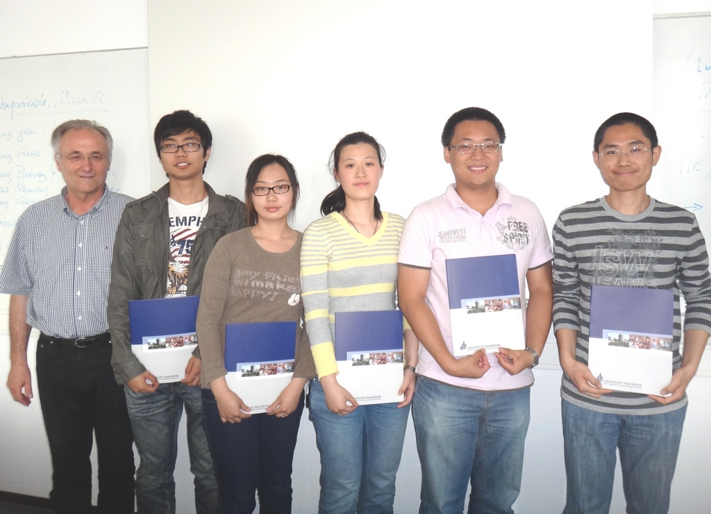 帕德博恩大学已经连续六年为我院在帕德博恩大学机械系学习的优秀本科生和优秀硕士生颁发德意志学术交流中心所提供的奖学金。帕德博恩大学中德合作项目协调人诺克博士向获奖者颁发获奖证书,并向他们表示热烈祝贺。
