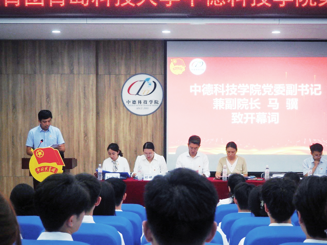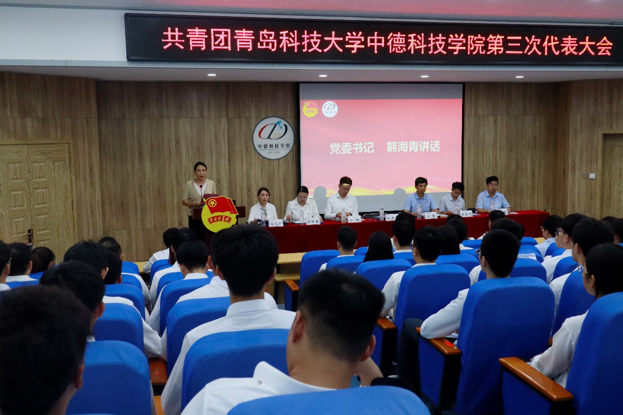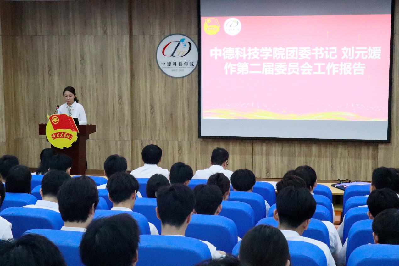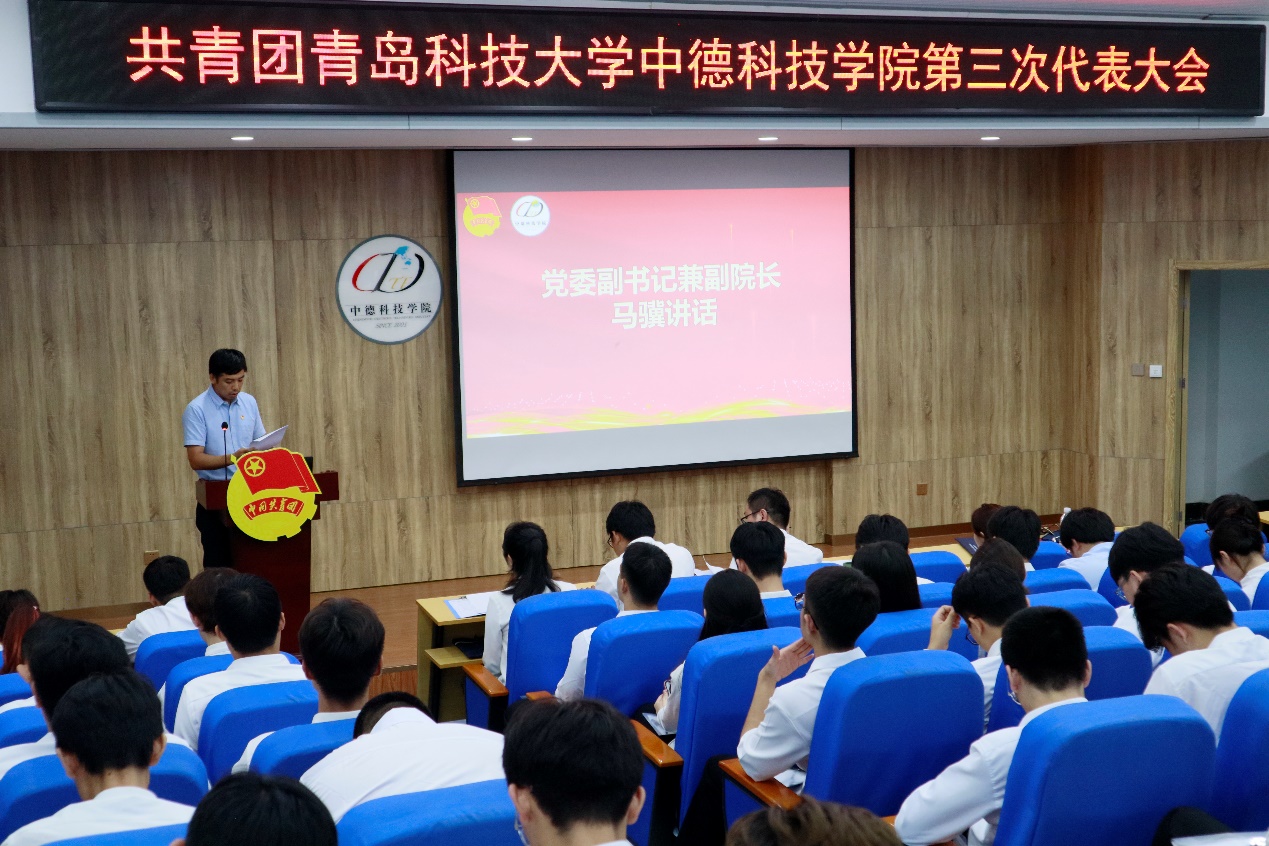 刘元媛代表共青团青岛科技大学中德科技大学第二届委员会作了题为《高举团旗跟党走,挺膺担当建新功,为建设“特色鲜明、走在前列”的高水平大学贡献青春力量》的工作报告。