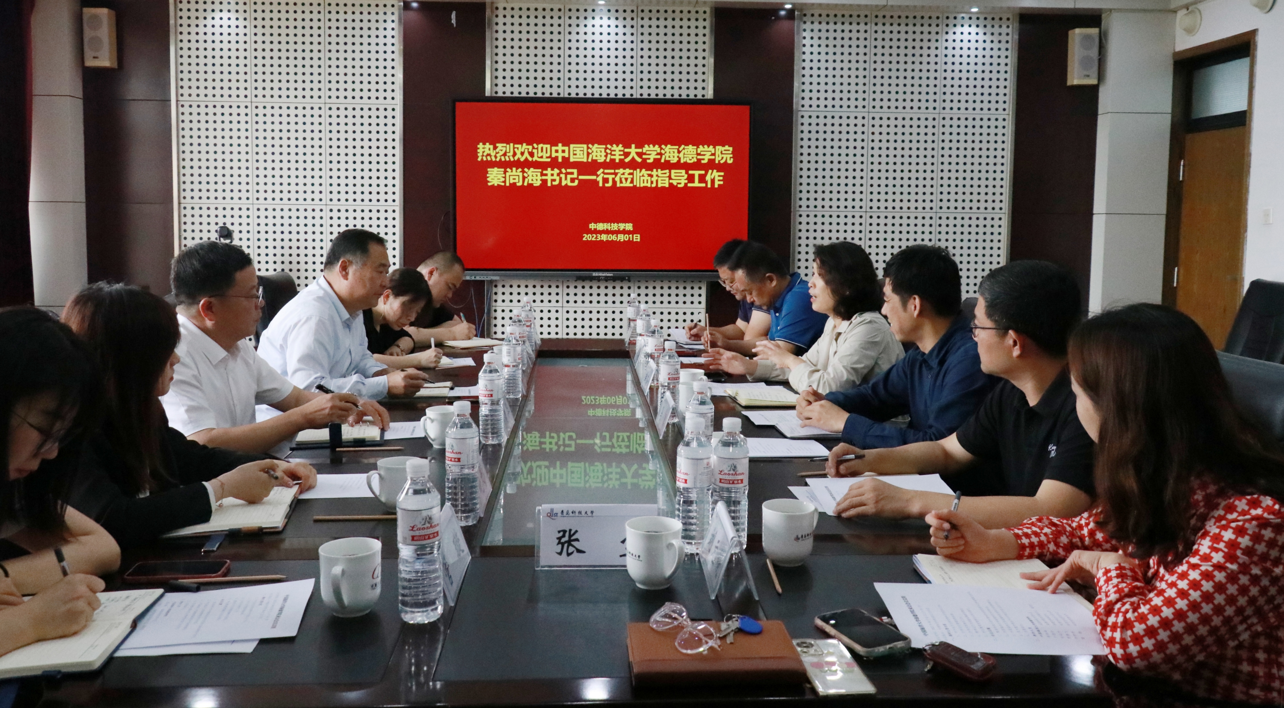 6月1日上午,中国海洋大学海德学院党委书记秦尚海、党委副书记、副院长于德华、副院长张临杰、团委书记李晓彤等一行6人来到我院交流访问,学院党委书记韩海青、党委副书记兼副院长马骥、副院长郭建章、团委、外事部相关负责人参加会议,会议由党委书记韩海青主持。