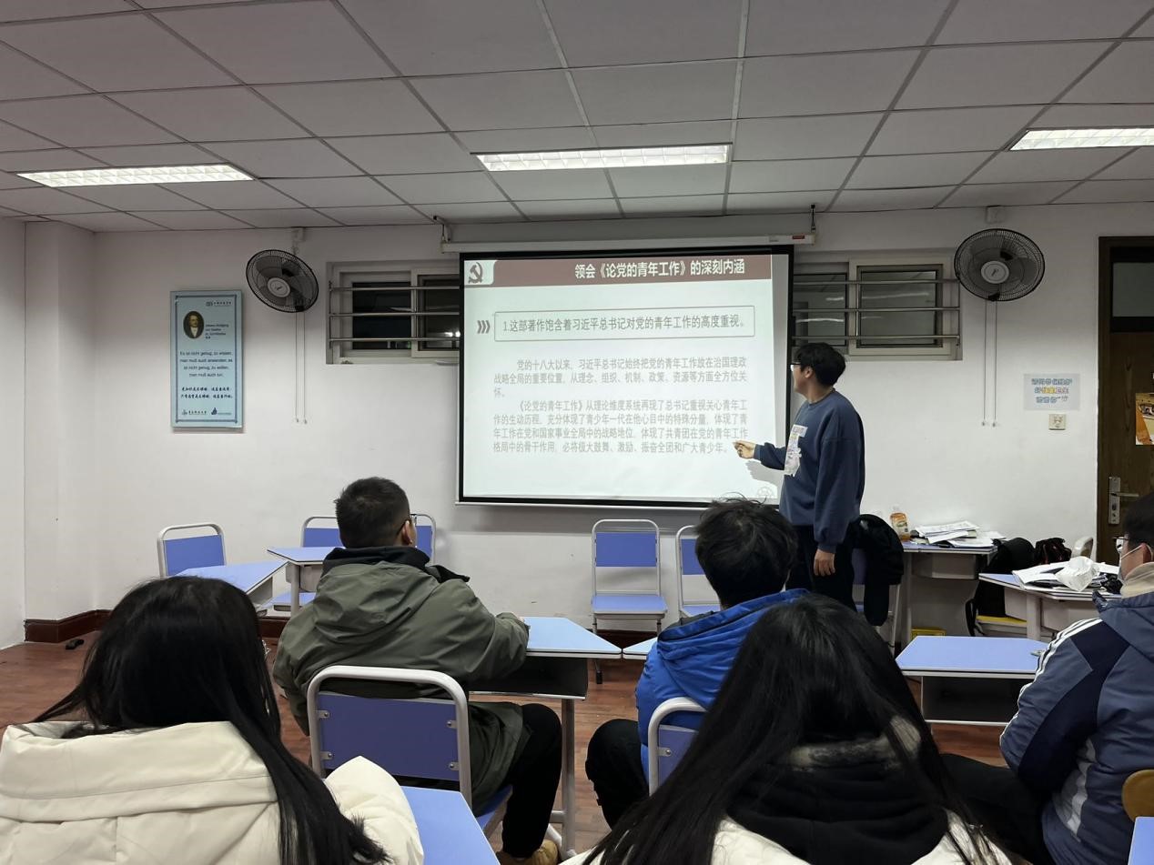 会上,应化中德201班张一帆同学分享了《论党的青年工作》,本书是党的十八大以来习近平总书记关于党的青年工作最全面、最系统的论著,为做好新时代党的青年工作指明了前进方向、提供了根本遵循。他号召广大青年学生要坚定理想信念、苦练本领、踔厉奋发,投身实践,在新时代新征程上留下无悔的奋斗足迹。