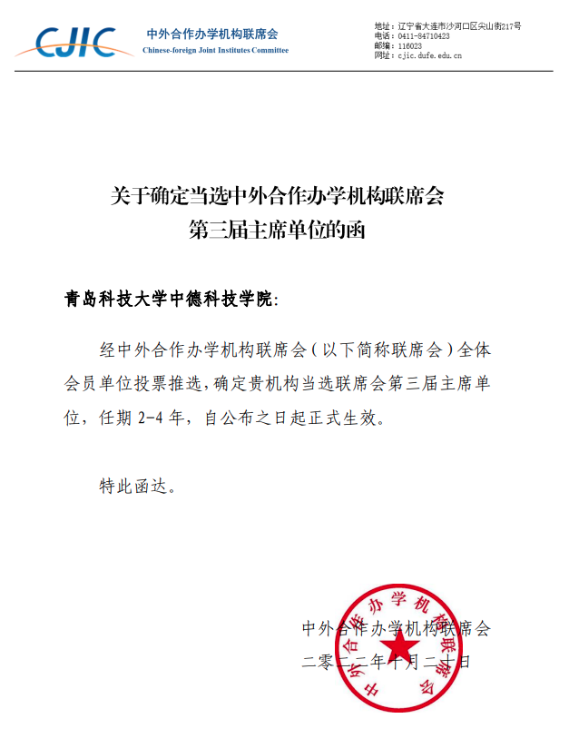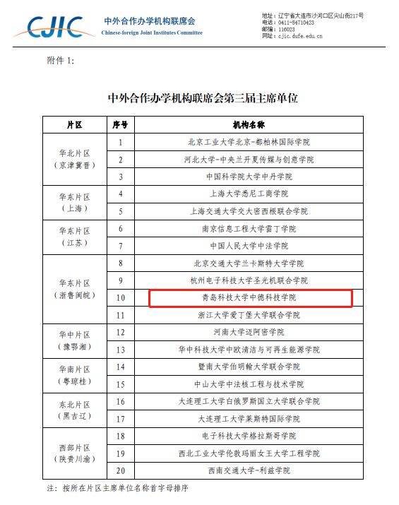 10月20日,在中外合作办学机构联席会公布的《中外合作办学机构联席会第三届主席单位推选结果》中,威尼斯5994成功当选为中外合作办学机构联席会第三届主席单位。本届主席单位由20家机构构成,其中9家机构来自985高校、5家机构来自211高校、3家机构来自双一流高校。威尼斯5994是本届当选的唯一一家以中德合作办学为背景的合作办学机构。