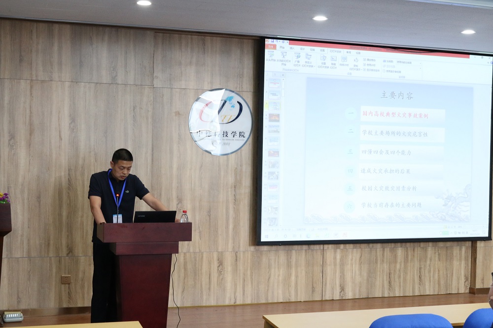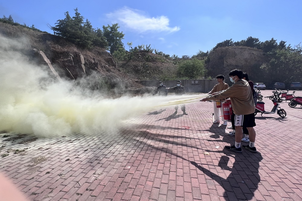 坚持育训结合,做到工作到位。5月24日下午,学院邀请保卫处余全波老师和赵淑东老师作消防安全知识讲座并开展消防灭火演练。各年级学生骨干、宿舍长参加。在学院C3103会议室,余全波老师通过发生在高校的火灾案例,分析火灾致灾的主要因素,向学生们传授了面临突发事件时的“四懂四会及四个能力”的应急自救、互救技能与方法。在北苑食堂广场,赵淑东老师介绍常用灭火器的使用方法,并重点强调了使用灭火器的注意事项。随后现场学生进行了实地灭火演练,提高了消防安全技能。