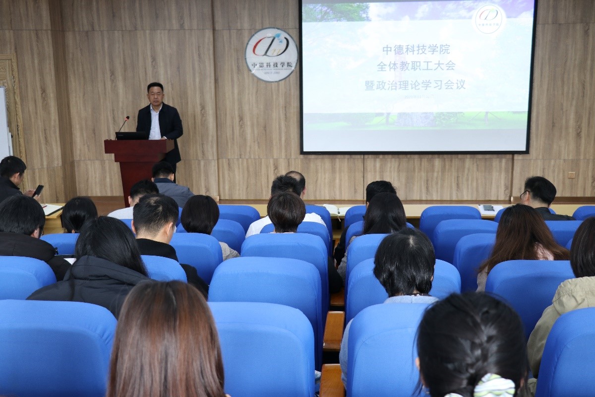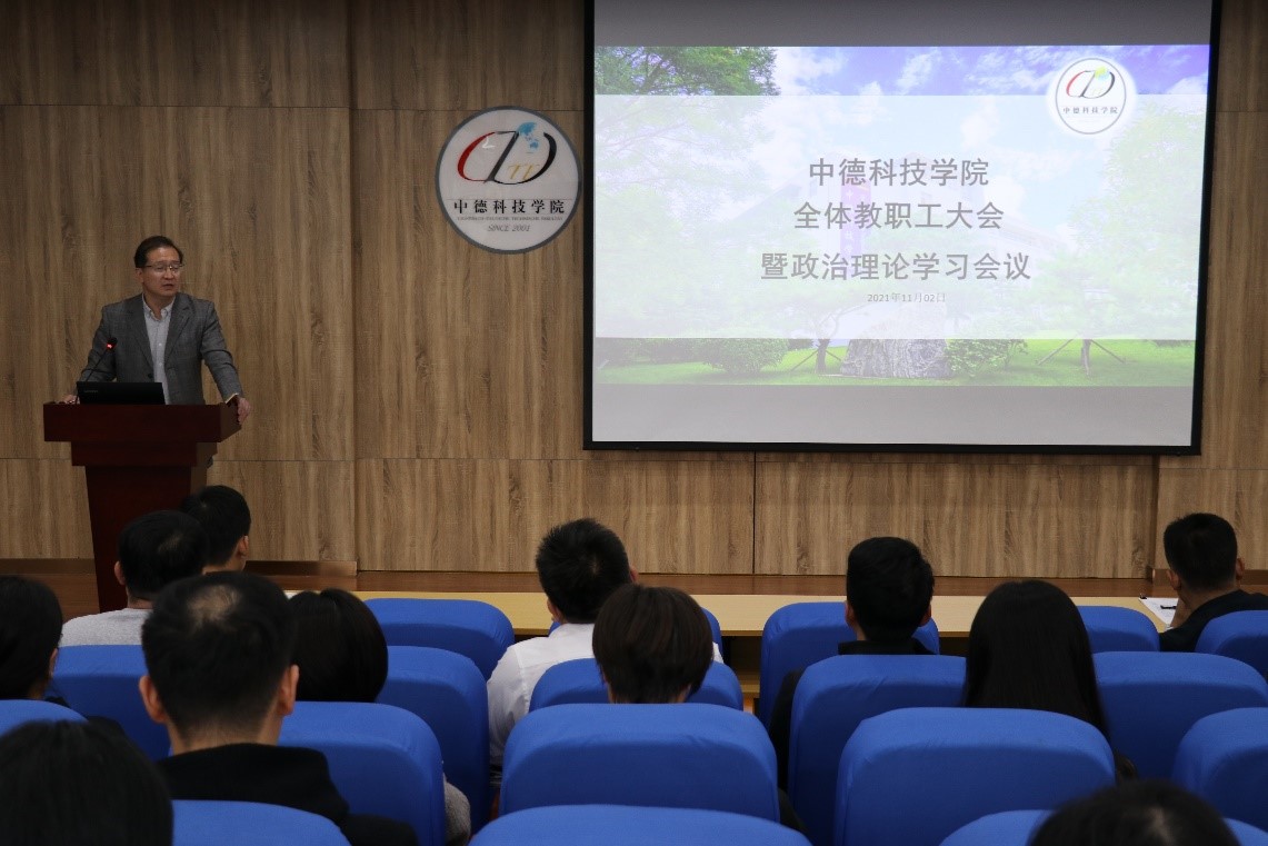 11月2日,威尼斯5994在学院报告厅召开全体教职工大会暨政治理论学习会议,全体教职工参加会议,会议由学院党委副书记兼副院长马骥主持。