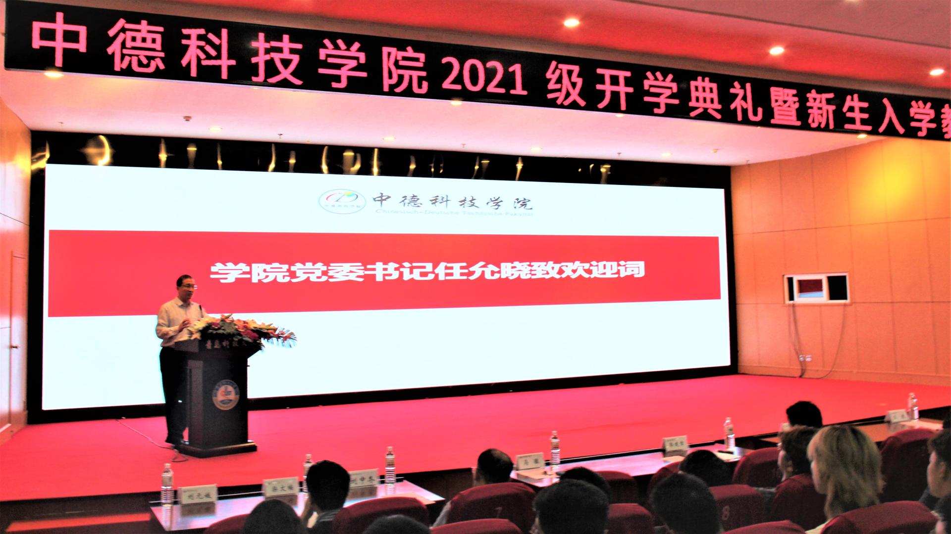 9月17日下午,学院2021级开学典礼暨新生入学教育在英科报告厅隆重举行。学院党委书记任允晓、副院长郭建章、副院长杨子江、校友代表王政和全体新生参加开学典礼,典礼由党委副书记兼副院长马骥主持。