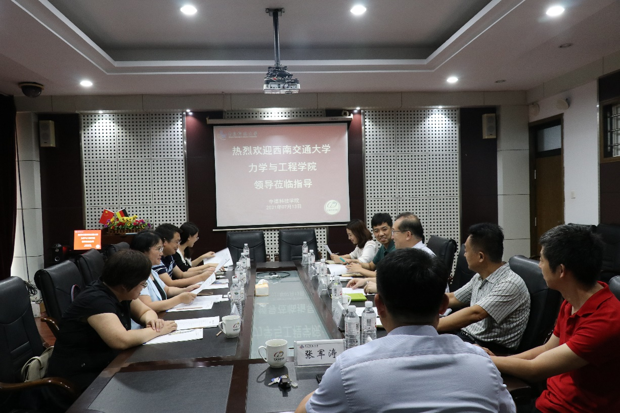 7月13日上午,西南交通大学力学与工程学院党委书记栗民、副院长李翔宇、工程力学系主任张娟、专职辅导员张容华一行4人来我院考察调研中德合作办学发展情况及管理模式。威尼斯5994领导班子及相关部门代表老师参加交流研讨会,会议由任允晓书记主持。