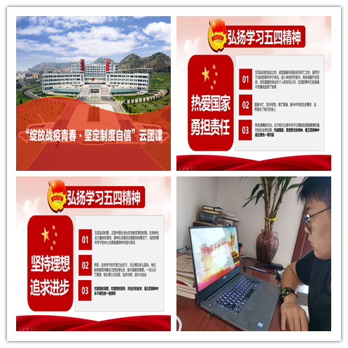 青春由磨砺而出彩,人生因奋斗而升华。“传承五四精神,绽放战疫青春” 系列主题教育活动,通过“云团课”、“云接力”、“云分享”等多种形式,深化了青年学生思想政治引领,将团员教育实效与疫情防控要求相结合,教育引导广大青年传承“五四”精神,厚植爱国情怀,坚定制度自信,牢记青春使命。