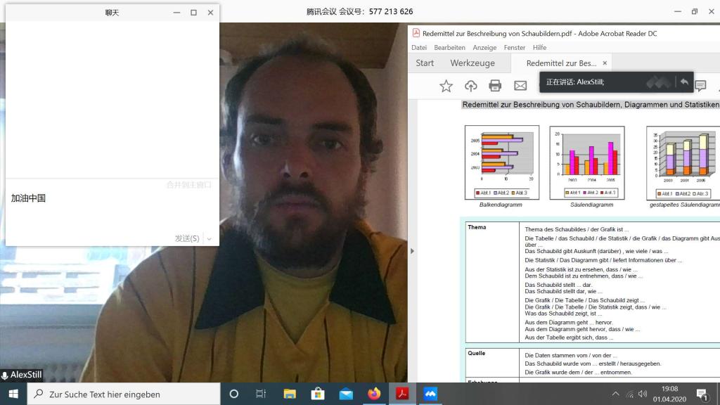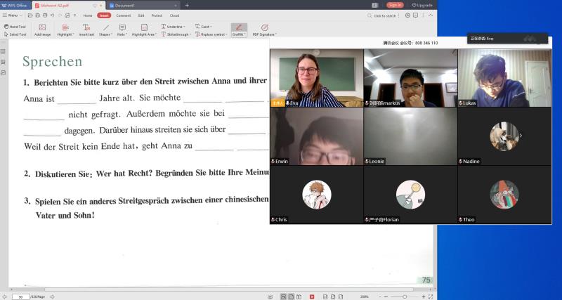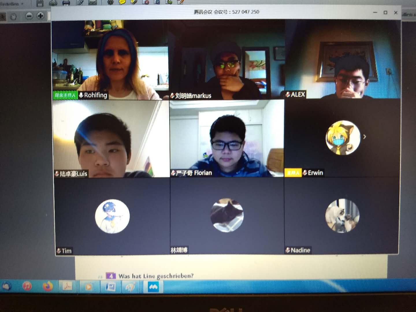 学院党政领导多次召开专题会议,集体研究学院在线课程开展的重难点问题。针对德方教师尚无法返校的实际情况,学院教学部、德语中心、外事部多方联动,为德方老师提供切实可行的操作建议,协助德方老师建立QQ、微信课程群。教学部、德语中心重点聚焦线上授课开展方式、授课平台的选择以及线上授课时学生参与度等,并根据德方教师所处不同地区的问题,科学安排授课时间。德语中心定期召开教学研讨,探讨网上授课方法、在线教学示范、线上授课时间和网络平台差异,确保师生连线无障碍、授课有技巧、互动有方略。Frank Gadermann教授、Phil Coy、Eva Spalke、Karina Rohlfing、Clarissa Lohr、Alex Still、Francisca Ladurner等外教根据学校教学要求,精心准备,开展线上教学,引导学生自主学习,做到教学标准不降,教学内容不减。学院海内外联动线上授课顺利开展,实现了“线下课堂”到“线上课堂”的融合和迁移。