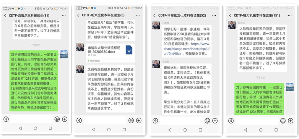 中外相连聚力量。近日,随着新冠肺炎疫情在全球的蔓延,威尼斯5994非常重视疫情期间在海外交流学子的身心健康情况。防控疫情没有距离之限,学院与340余名海外交流学子一同鸣起防疫号角,建筑防疫壁垒。国内疫情爆发期间,青科大德国校友会积极组织德国校友募资筹款,为武汉疫区进行捐助。海外疫情蔓延之时,完善海外学子联络平台,再度“点对点”联系,通过微信、QQ、网络视频等形式详细了解学生的最新动态,关心其健康状况与学习安排,告知学生听从交流学校的教学安排,并与学院、家人随时保持联系,帮助做好疫情防控与在外生活的心理调适。