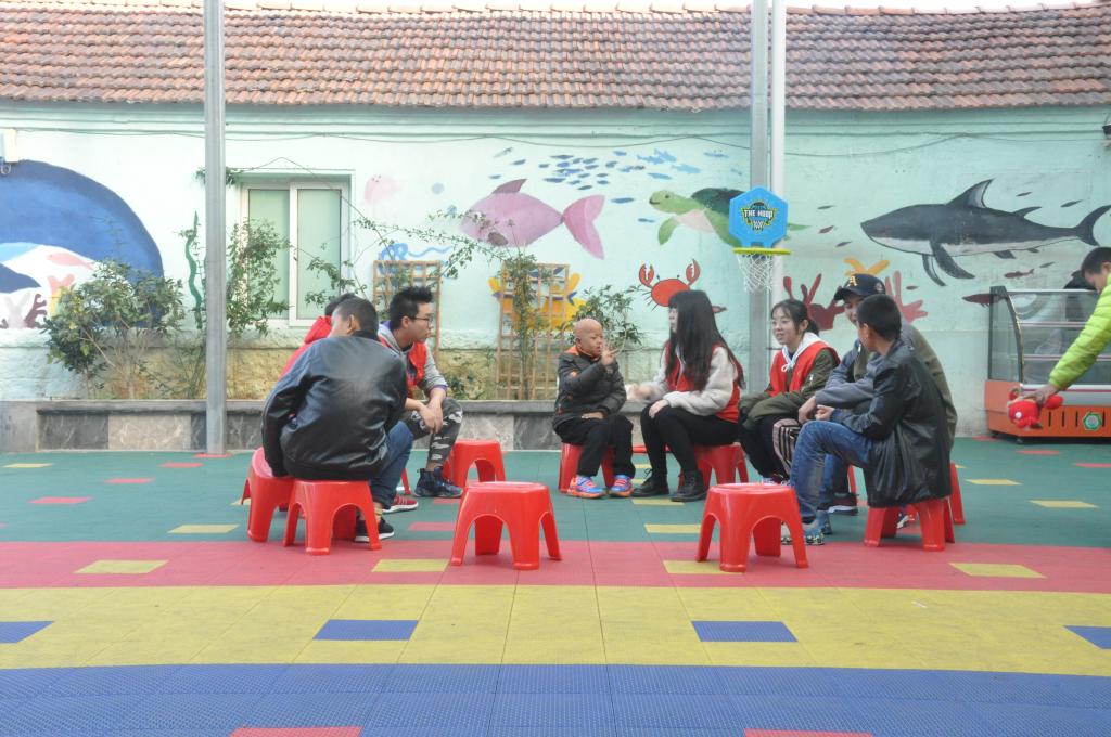 志愿者们陪同孩子们上课,通过语言、肢体等与他们交流。阳光体育活动中,志愿者陪同小朋友开展了游戏,共享游戏带来的快乐。