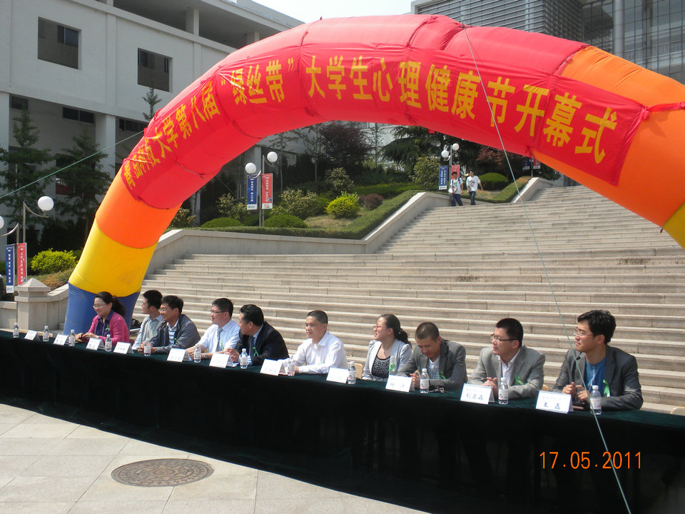 开幕式上,郑德前致开幕词。他指出,举办“绿丝带”大学生心理健康节是大范围宣传普及心理健康知识,全面优化学生心理素质的一项重要举措。要着力构建和谐良好的师生关系,强化大学生心理健康教育的全员参与意识,营造人人关注心理健康的良好校园氛围。刘保成致贺词,对本届“绿丝带”大学生心理健康节的如期举办表示热烈的祝贺。徐立勋宣读了第八届“绿丝带”大学生心理健康节活动方案。开幕式收到了来自中国海洋大学、山东科技大学、青岛理工大学、青岛农业大学等兄弟院校心理咨询中心发来的贺信。