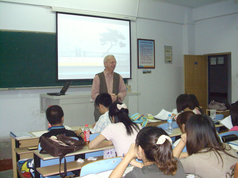近日,德国帕德博恩大学化学系费尔斯教授(Prof. Fels)再次带领两名助手来我院为2008级应用化学专业的同学集中授课,为期近一个月。此次授课恰逢我校60周年校庆及2010级新生入学,费尔斯教授不仅全程参加了校庆活动,还特意为应用化学专业的近40名新生作了关于德国和帕德博恩大学的主题报告。