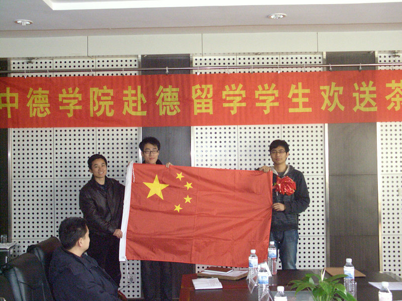3月15日上午,我院2011年首批赴德学生欢送会在中德学院会议室举行。校后勤党总支书记王江忠、教务处副处长刘宝成、国际处副处长王灏、中德学院院长王守城、副院长薄建全以及学院有关部门负责人和部分师生参加了欢送会。欢送会由学院党总支副书记徐立勋主持。