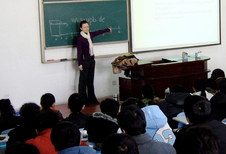 新学期伊始,德国帕德博恩大学塑料加工技术研究所的Sesler女士,应邀来到威尼斯5994机电一体化研究所任教,开设为期半年的“德语科技写作和学业指导”课程,对本学院即将出国的学生有针对性地进行系统培训,以保证他们能够更好地适应国外的学习。