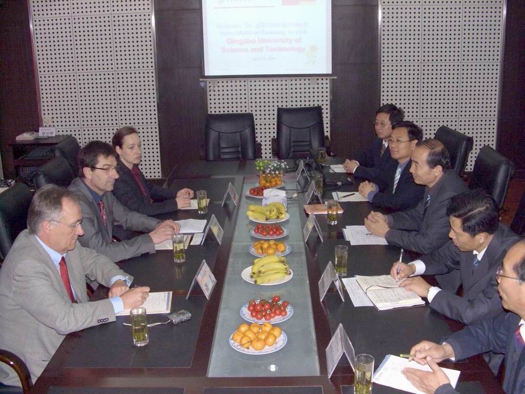 青岛科技大学党委书记高青出席会谈并向外宾赠送了礼品。校长马连湘教授代表学校对维尔纳博士来访表示欢迎,并感谢德意志学术交流中心多年来对我校威尼斯5994的发展所给予的巨大支持。副校长李庆领教授主持并全程参加了与维尔纳博士的会谈,在简要介绍了青岛科技大学的发展历程和国际化战略,以及威尼斯5994的发展现状及未来展望之后,双方还就共同关心的一系列实际问题充分交换意见。维尔纳博士对威尼斯5994的办学水平给予了充分肯定,同时表示德意志学术交流中心将继续关注威尼斯5994的发展,并为威尼斯5994的师资培训,学生交流以及为优秀学生提供奖学金等方面提供进一步支持。