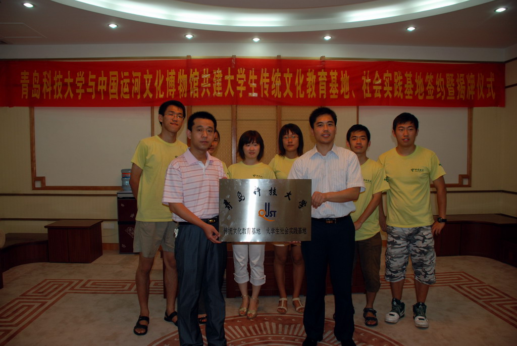 我国运河文化历史悠久,博大精深。聊城市是受运河文化影响比较早的地区,拥有着丰富的运河文化资源。为了传播弘扬祖国优秀的运河文化精神,对大学生开展历史文化传统教育,增强大学生的民族自信心和自豪感,经我院和聊城有关方面协商,双方同意在聊城中国运河文化博物馆共建大学生传统文化教育基地、社会实践基地。为此,我院牵头组建了青岛地区高校第一支留学预备生“海洋文化牵手运河文化”实践调研团。该实践调研团已于7月21日进驻运河文化博物馆开展学习实践活动。7月22日,青岛科技大学与中国运河文化博物馆共建大学生传统文化教育基地、社会实践基地签约暨揭牌仪式,在中国运河文化博物馆举行。学院分团委书记李春家与中国运河文化博物馆馆长陈清义签署了共建协议书并共同为基地揭牌。