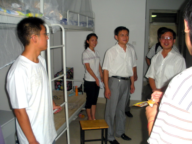 学院院长王守城、党总支书记郭曰铎到宿舍看望慰问新同学