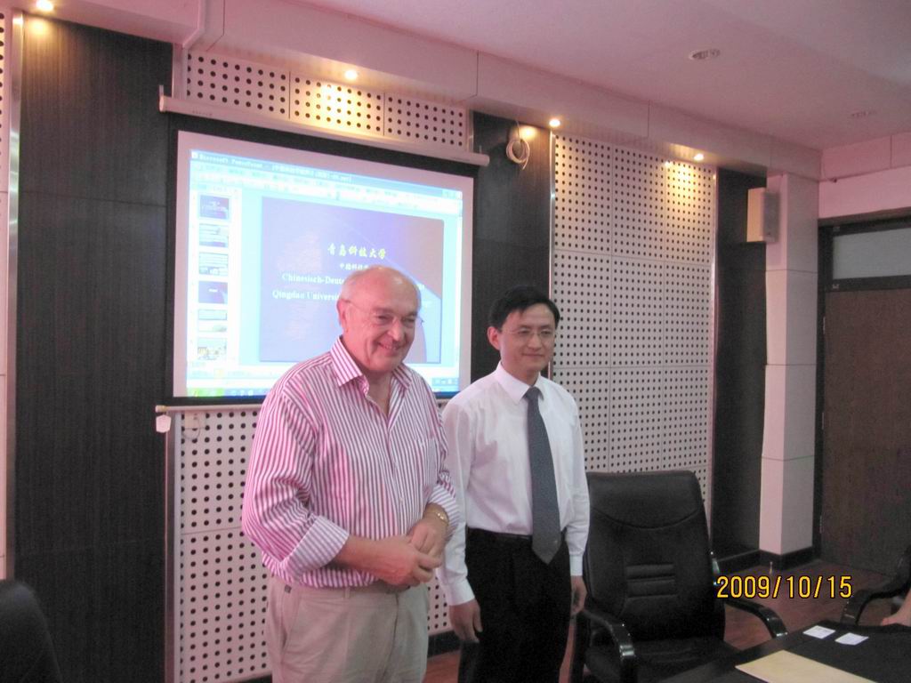 正在我院进行学术访问的帕尔教授向来访客人介绍了中德学院的建立与发展。向来访客人介绍了中国与德国加强多方面合作的现实意义和历史意义,并回答了来访客人提出的问题。座谈结束之后。来访客人在帕尔教授和我院外事部门人员的陪同下参观了中德学院实验室和青岛科技大学校园、教学楼、餐厅、校史展览馆和图书馆等教学生活设施。短暂的参观与座谈给来访客人留下了深刻而美好的印象。