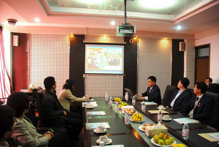 院长王守城、党总支书记郭曰铎对郑思洁部长一行的到来表示热烈的欢迎并介绍了中德学院的基本情况。分团委书记李春家向考察组做了题为《探索中外合作办学形势下共青团工作新机制,培养青年学生跨文化交流能力》的国际化团建工作汇报。在听取了情况介绍和工作汇报后,考察组仔细查看了我院国际化团建工作的工作资料。围绕如何在国际化办学形势下开展共青团工作这一主题,考察组各位成员同学院领导、老师进行了深入交流。