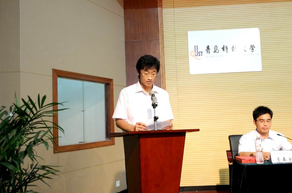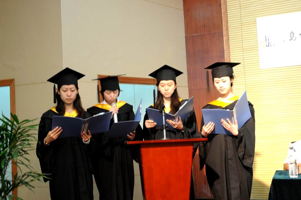 毕业典礼上,党总支书记郭曰铎宣读了关于表彰2009届优秀毕业生的决定。学生会主席刘超宣布了“我最喜爱的老师”评选结果。伴随着激昂的音乐,青岛科技大学学士学位评定委员会主席、党委常委、副校长李庆领为每一位09届毕业生颁发了毕业证书,扶正流苏并合影留念。典礼上,为“我最喜爱的老师”王守城颁发了奖牌,学生为老师献上了鲜花;为周晓亮等25名获得校级优秀毕业生和省级优秀毕业生的学生颁发了证书。典礼上,毕业生代表向母校赠送了“春雨润物明德育才,泽流及远千里思源”锦旗,表达了对母校的感恩之情。