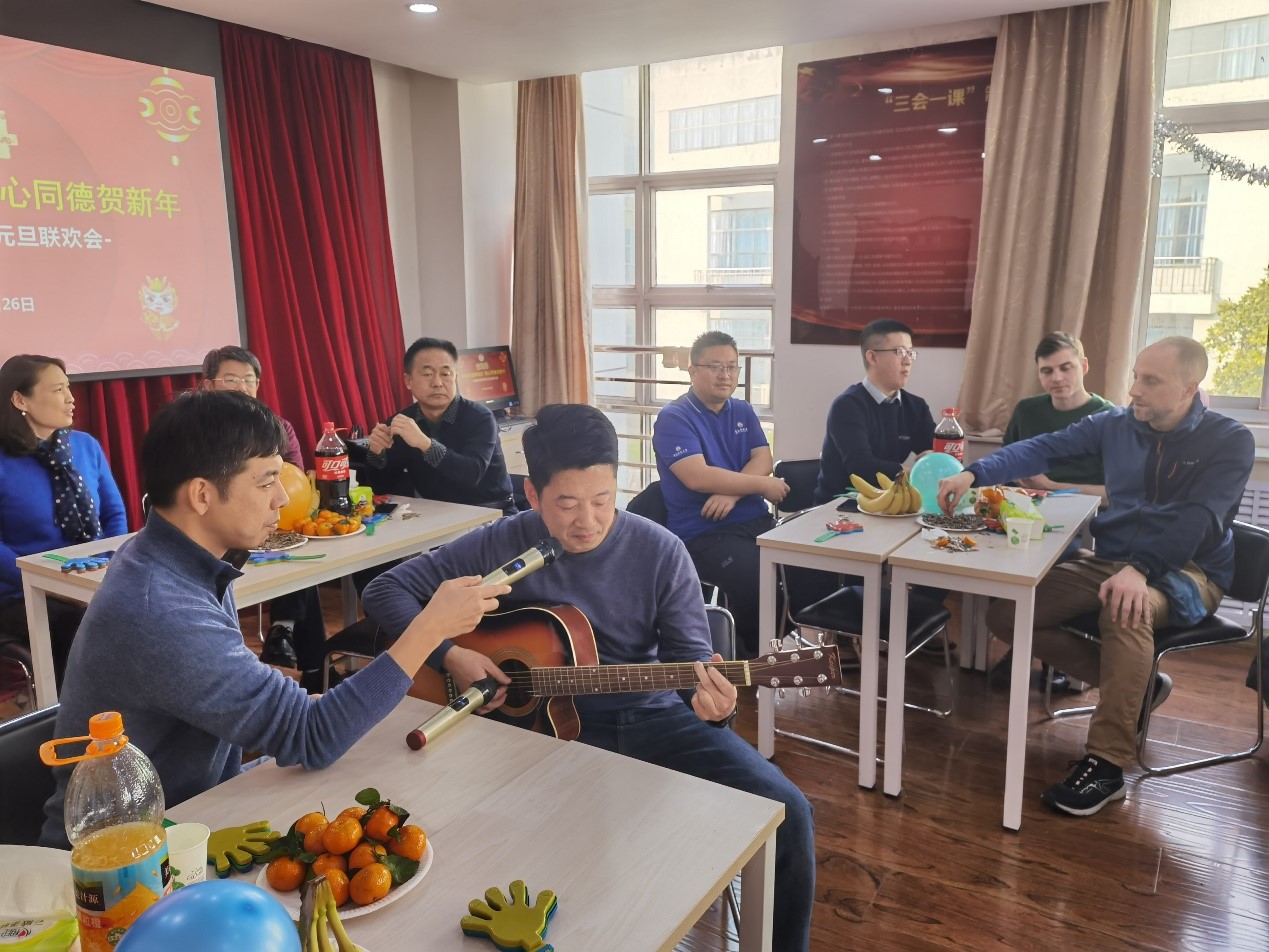 元旦联欢会节目精彩纷呈,将现场氛围迅速点燃。德语中心、自动化教研室、机械教研室、教学办及学工办的老师们以歌曲或乐器演奏的形式为全体教职工带来了一场视听盛宴,歌声、演奏声、掌声、欢呼声,声声穿透人心,赢得了老师们的阵阵掌声。最后,在场的老师们共同欢唱《相亲相爱》,充分展现了团结协作的精神风貌,增强了全体教职工的凝聚力和向心力。