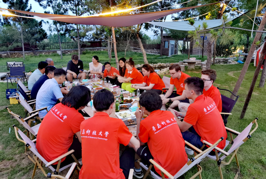 随后,实践队在露营公园内享用了晚餐,队员们品尝到了正宗的山东煎饼和当地特色美食。德国留学生们入乡随俗,学着中国学生的样子卷起了煎饼,边吃边夸赞美味,还畅饮了各类啤酒。期间中国学生就“我眼中的中国”等话题与德国留学生们进行交流,并做简要采访,为此次实践成果提供了依据和支撑。