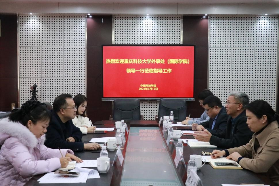 3月12日下午,重庆科技大学外事处(国际学院)处长(院长)李海荣一行到访我院。学院院长岳学海、党委书记韩海青,学校国际交流与合作处副处长宋飞出席交流活动。活动由院长岳学海主持。