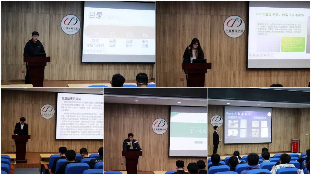 座谈会邀请了本次寒假社会实践优秀团队代表参加,各代表充分准备,内容涵盖了专题调研、云支教、青鸟计划、志愿服务、社区实践等多个方面。上台汇报的学生代表们声情并茂地将实践过程中的所学、所思、所想娓娓道来。他们或是述说着触人心弦的故事,或是讲述着难以忘怀的感人瞬间…。他们扎实的工作、朴实的语言赢得了在场同学的阵阵掌声。
